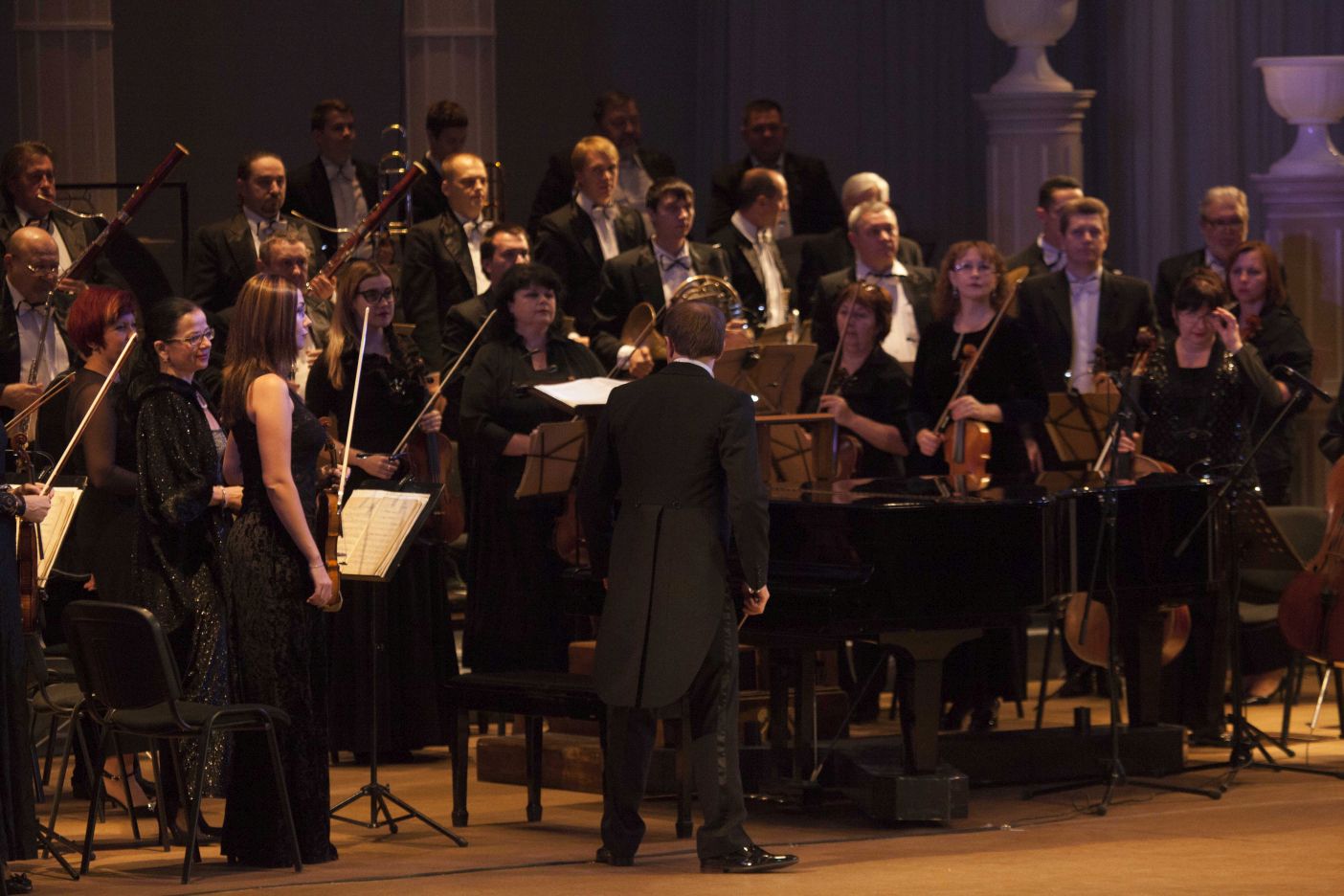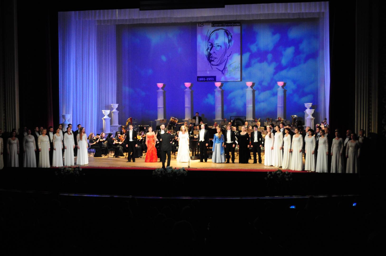 Концерт открыл хор «Донбасс Оперы» - под его выступление на фоне закрытого занавеса публике демонстрировались фотографии, сделанные в разные периоды жизни Сергея Прокофьева. Затем занавес был поднят и торжественную эстафету принял оркестр Донецкой государственной академической филармонии, исполнивший «Танец рыцарей» из балета Прокофьева «Ромео и Джульетта». В этот вечер прозвучали также адажио из балета Арама Хачатуряна «Спартак», «Вокализ» Сергея Рахманинова, финал симфонии № 5 Дмитрия Шостаковича.