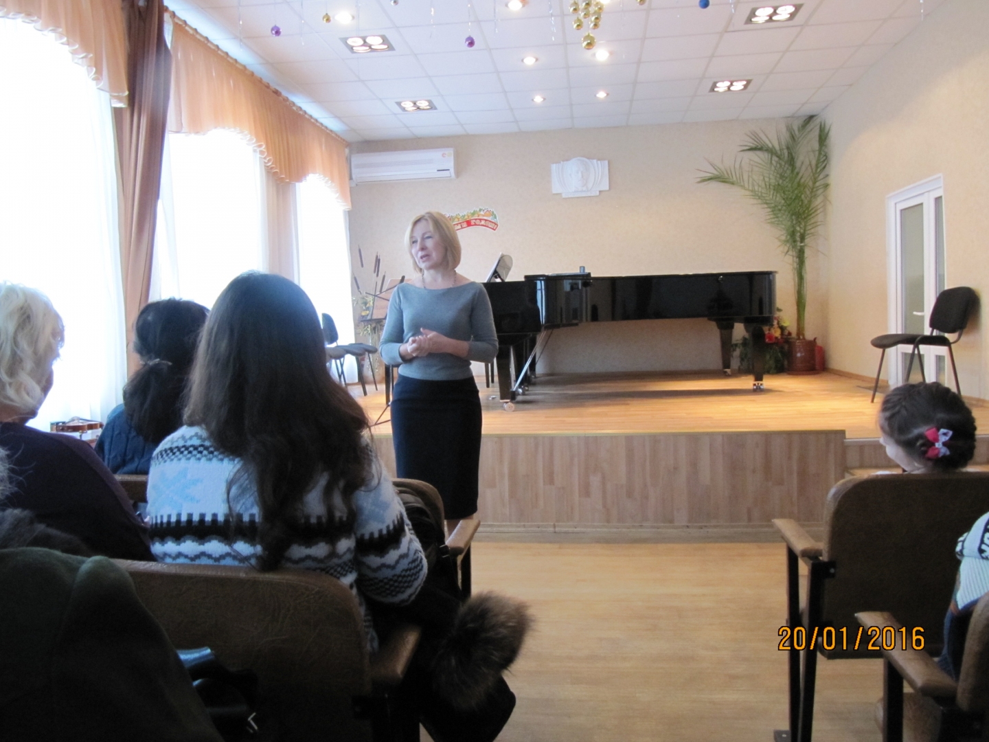 20 января 2016 года прошел мастер-класс Шевелек Л.Ю. - преподавателя музыкальной школы №1 им. Н. Леонтовича города Донецка на тему: «Необходимость технического развития как базы художественного становления юного скрипача».