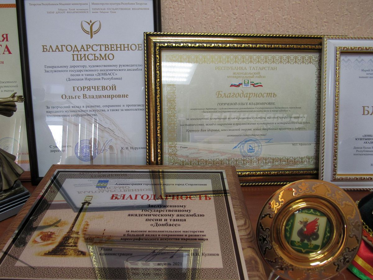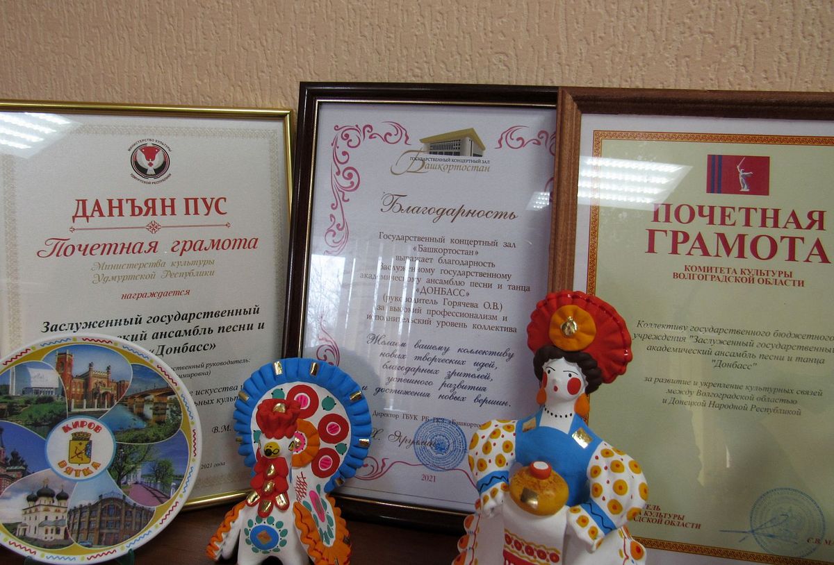 Российским зрителям мы продемонстрировали как уже давно полюбившиеся номера, так и премьеры. Это, конечно же, широко известная «Калинка» – одна из визитных карточек ансамбля «Донбасс», и «Моряки Азовской флотилии», и «Русский танец», а также «Русская плясовая» и «Донской казачий пляс». Огромный успех имели номера русской народной и казачьей тематики в исполнении Виктории Струковой и вокальной группы ансамбля «Донбасс». Все концерты гастрольного тура прошли на высочайшем творческом подъёме при полных аншлагах и вызвали огромное количество восторженных откликов и слов благодарности со стороны как публики, так и организаторов. Много тёплых записей зрители оставили в книге отзывов ансамбля, а на наших страницах в социальных сетях поток сообщений и восхищённых комментариев не иссякает по сей день. На протяжении гастролей руководство и коллектив ансамбля «Донбасс» были удостоены большого количества почётных грамот и благодарностей от различных ведомств и организаций в тех регионах, где проходили наши концерты. В частности, это Почётная грамота Комитета культуры Волгоградской области; Почётная грамота Министерства культуры Удмуртской Республики; Благодарность Министерства культуры, по делам печати и национальности Республики Марий Эл; Благодарность администрации городского округа города Стерлитамак; Благодарности от Государственного концертного зала «Башкортостан» и Татарской государственной филармонии имени Габдуллы Тукая и многие другие.