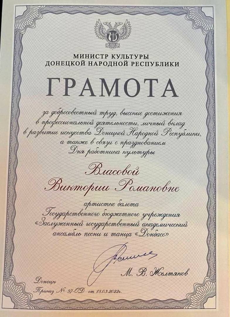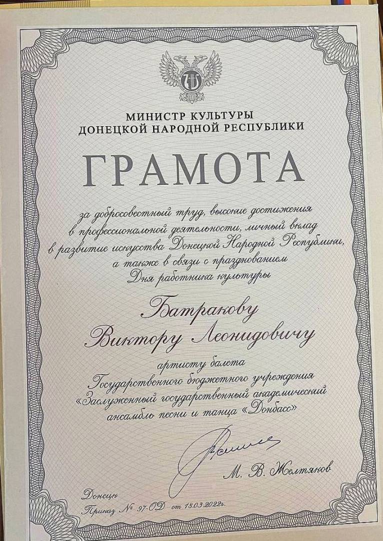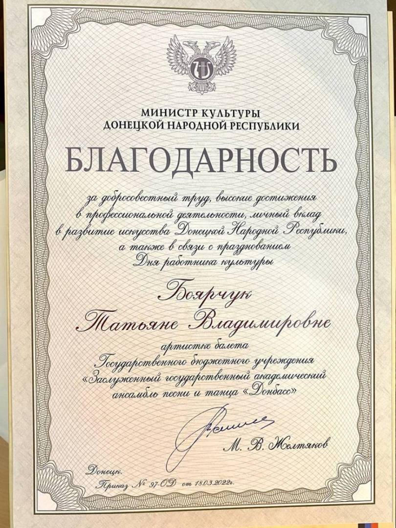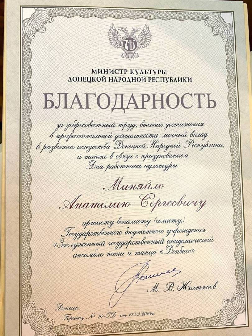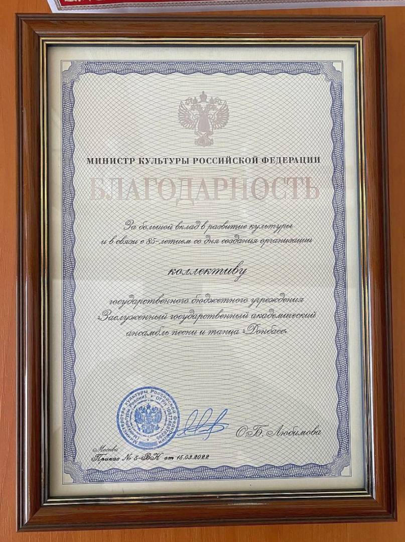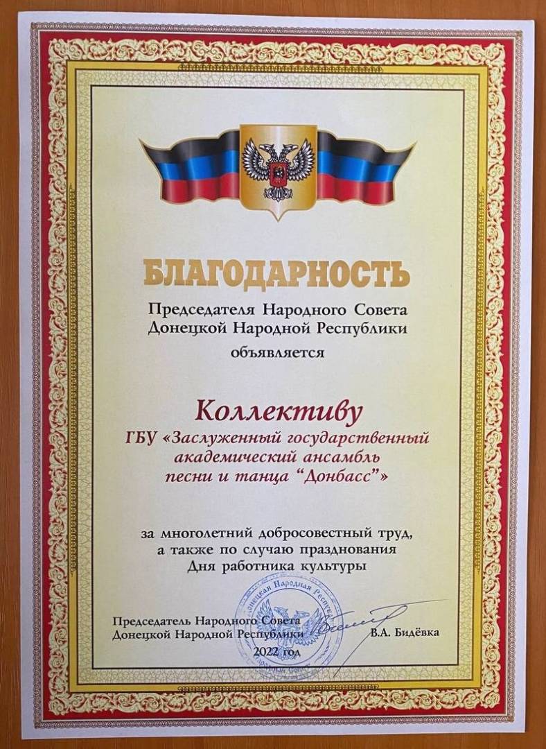 Коллектив ансамбля «Донбасс» в свой профессиональный праздник получил многочисленные награды