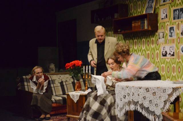 Действие происходит в уютной небольшой квартире, где сохраняется память о прошлом. В камерном пространстве Руслан Фадиенко построил помещение с прихожей, коридором, залом, кухней и даже лестничной площадкой, где и разворачиваются основные сцены. Настоящие предметы быта, еда, напитки и фотографии на стене, где можно рассмотреть, какими были главные героини в детстве и юности.
