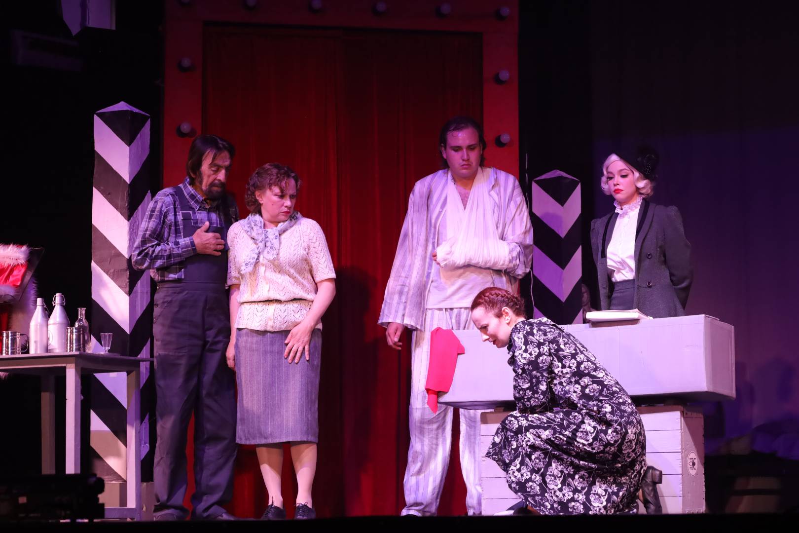 В спектакле Мариупольского театра заняты: Анна Архипова, Яна Зубарева, Виола Королёва, Анна Пенькова, заслуженный артист Украины Александр Арутюнян, Валерий Сарбей, Игорь Сигнаевский, Максим Третьяков, Артем Умнов, Антон Шаламов.
