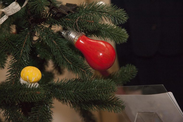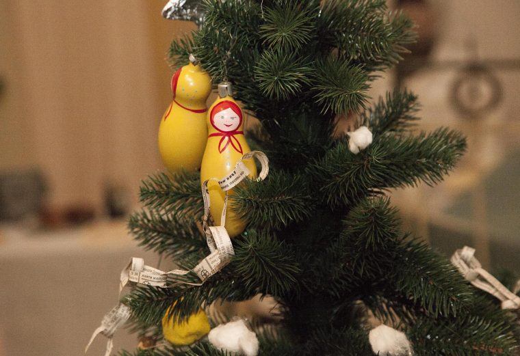 «В годы Великой Отечественной войны новогоднюю елку украшали кусочками бинта, ватой, картонными игрушками, использовали стреляные гильзы. Если это было на фронте — там было совсем все просто. Новогоднюю елку ассоциировали с Победой — ведь все люди под Новый год загадывают желание. Здесь мы проводим параллель с современностью, так как ни одна война не уничтожит у нас желание жить, верить в чудеса, загадывать добрые желания», — рассказала заведующая Военно-историческим музеем Людмила Декурно.
