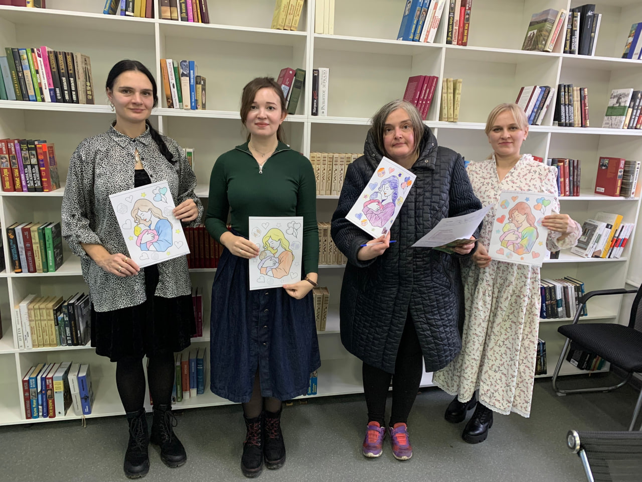 28 ноября в Донецкой республиканской библиотеке для молодежи прошла встреча «Разговор о маме», посвящённая Дню матери в России. Групповое занятие с элементами арт-терапии для читателей и сотрудников библиотеки провела Анастасия Олендарь, семейный и перинатальный психолог, мама двоих детей.