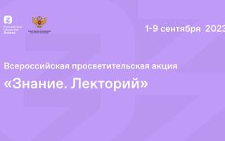 С 1 по 9 сентября 2023 года Российское общество «Знание» совместно с Министерством просвещения Российской Федерации проведут VI Всероссийскую акцию «Знание. Лекторий». Лекторы из различных сфер знаний поделятся историями успеха, обсудят векторы роста и развития.